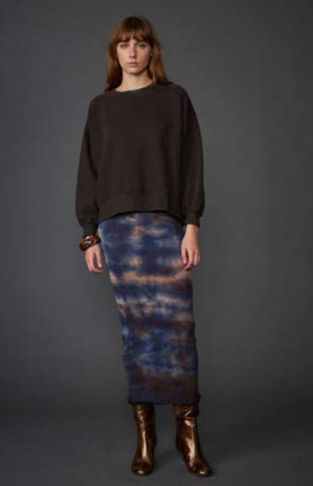 Choc/Blue Tie Dye Mesh Maxi Skirt