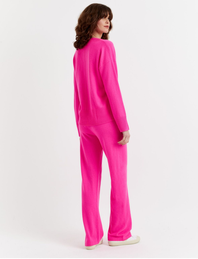 90% Wool/10% Cashmere. Coordinates with Hot Pink V Neck Sweater